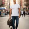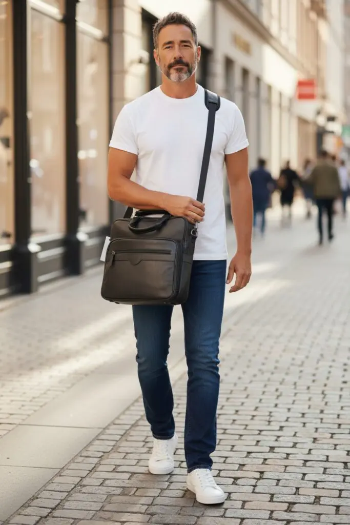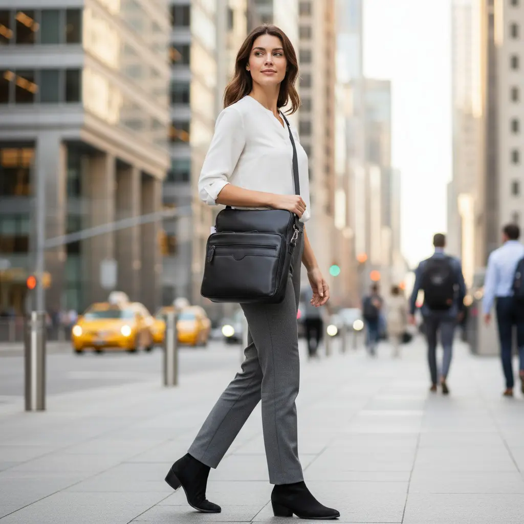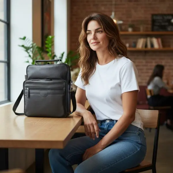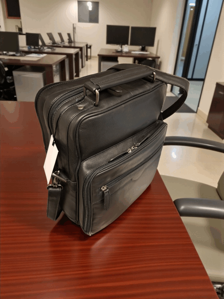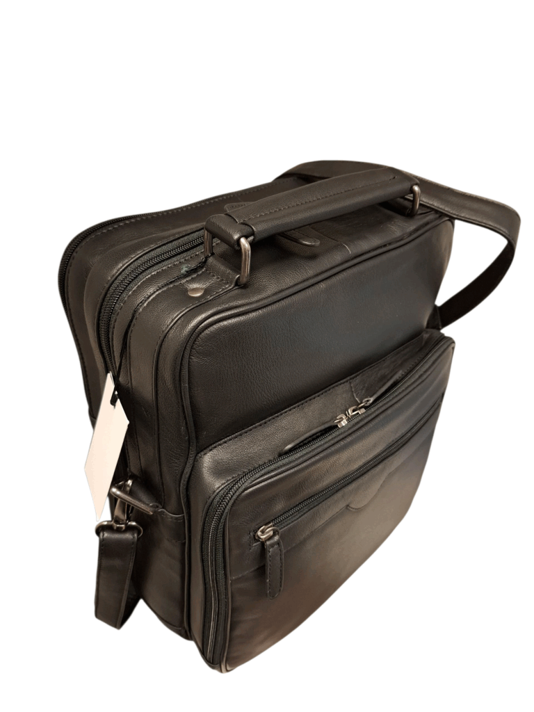Taska með spjaldtölu hólfi og vasa á baki.Stórt aðalhólf ásamt stóru hólfi að framan með símavasa og rendur vasi að framan. Handfang ásamt langri ól.