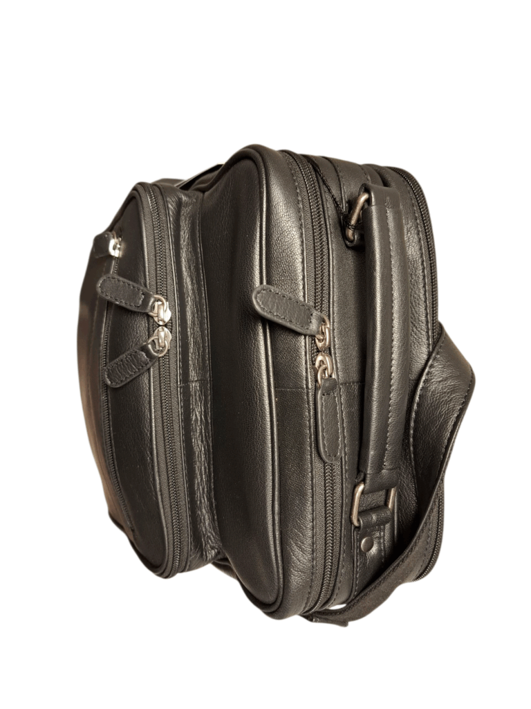Taska með spjaldtölu hólfi og vasa á baki.Stórt aðalhólf ásamt stóru hólfi að framan með símavasa og rendur vasi að framan.