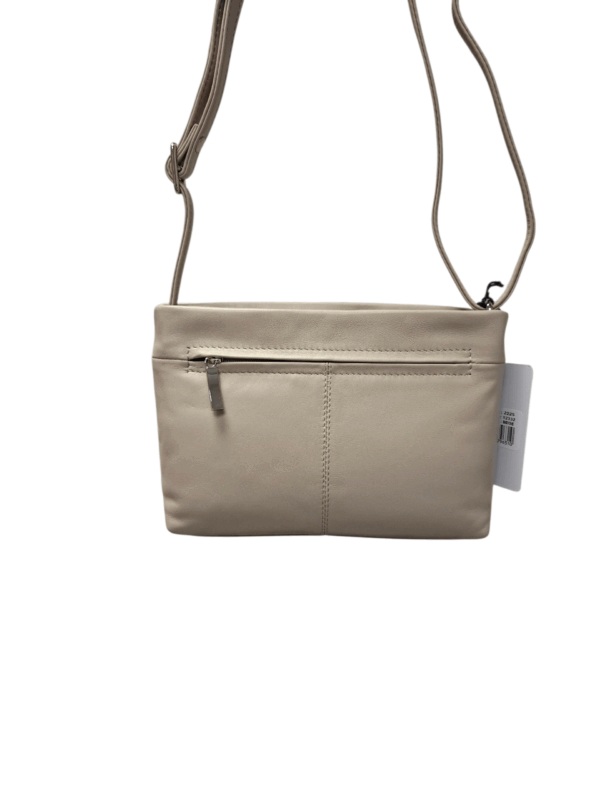 Eitt hólf smelt að framan og rent að aftan, aðalhólfið er með rendum vasa ásamt hólfi fyrir síma.