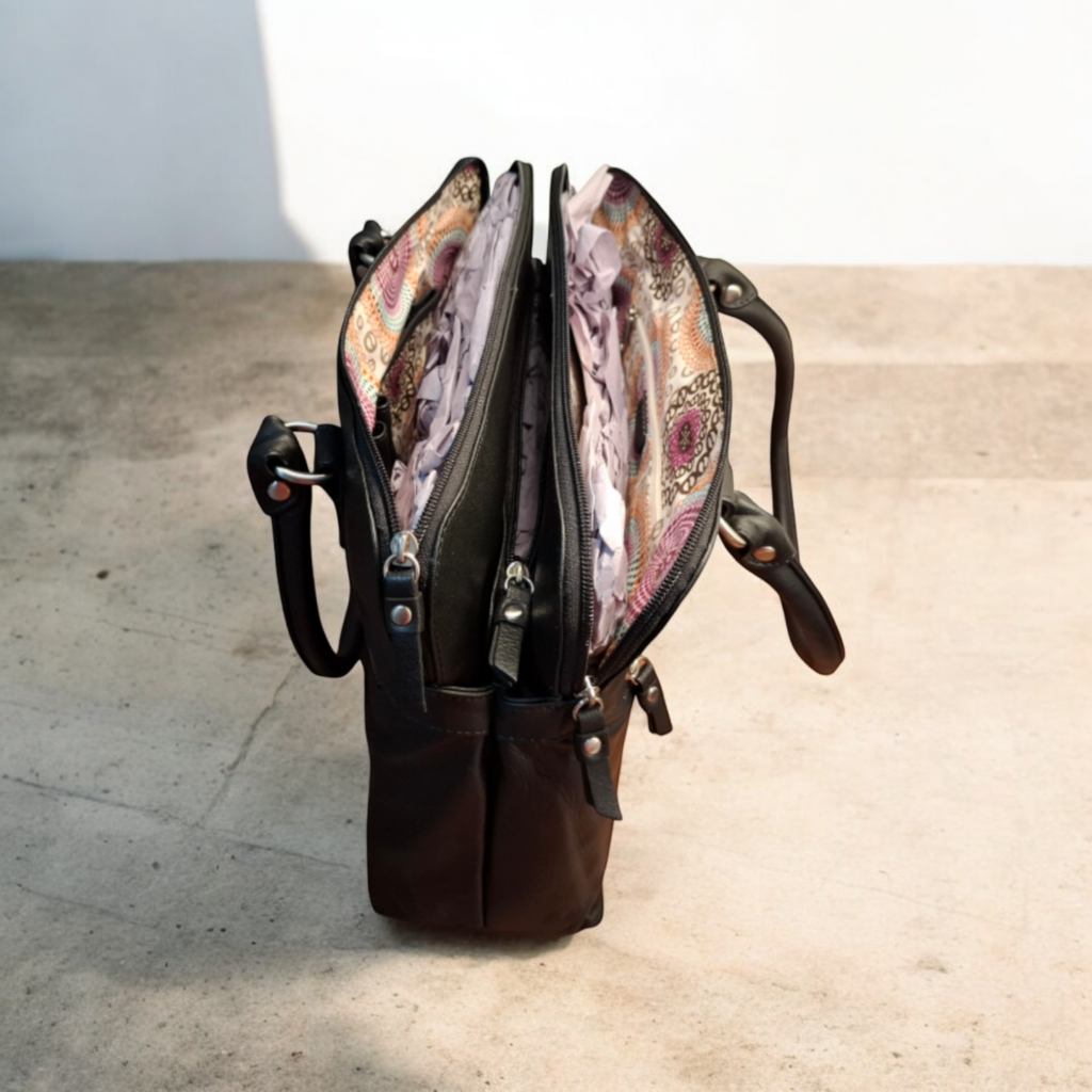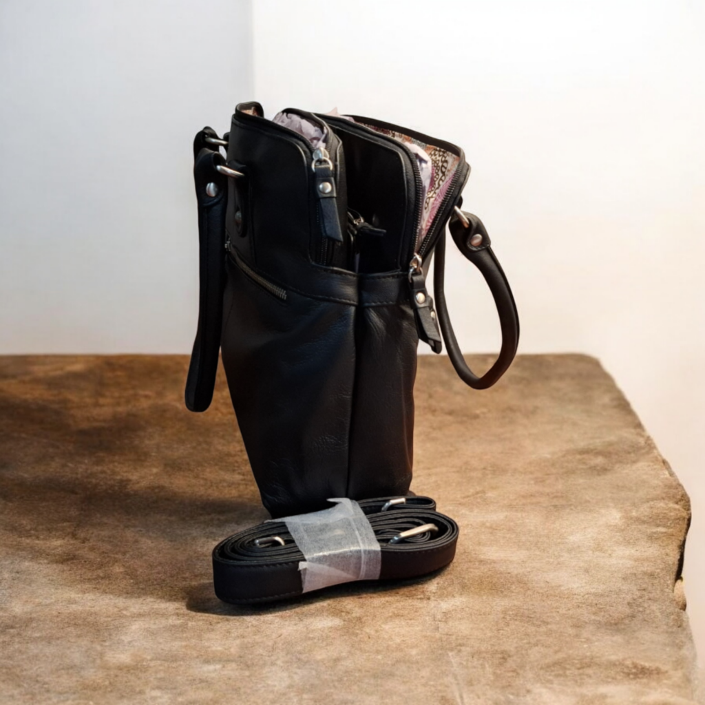 Pavini Leðurtaska með axlaról Með 2 renda vasa að framan og 1 að aftan,með 3 rend hólf vasar fyrir síma og penna og fl