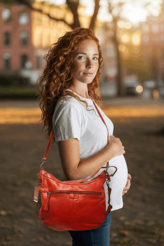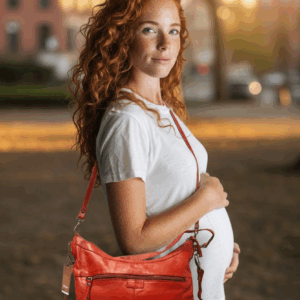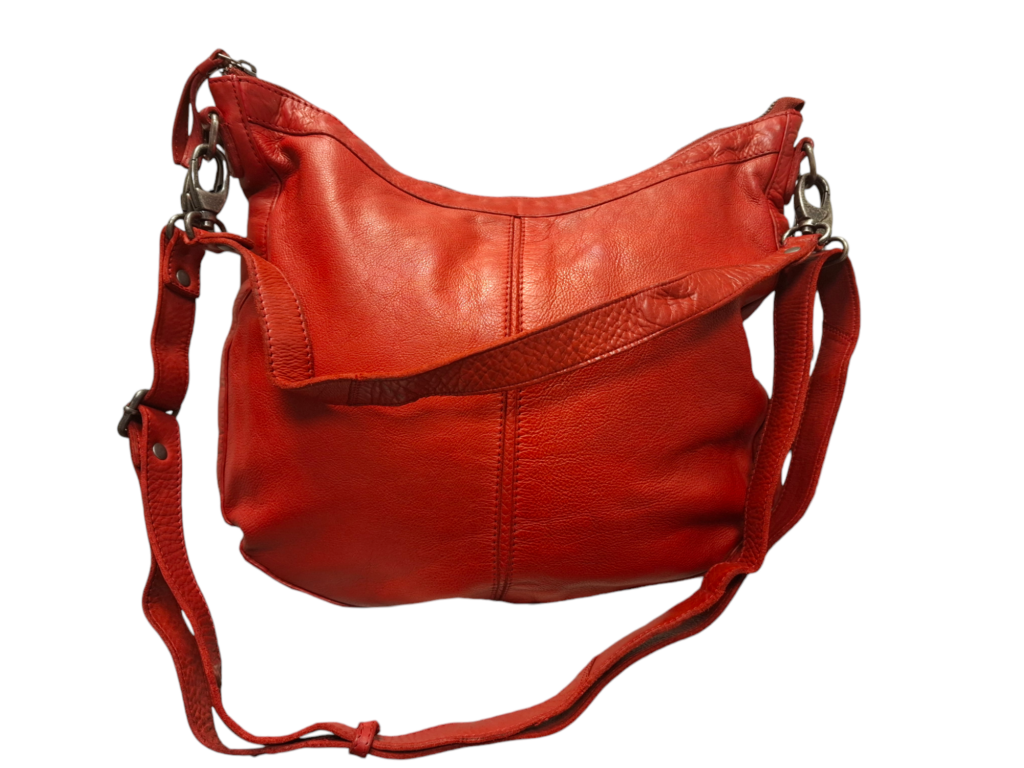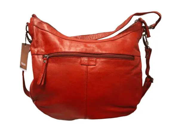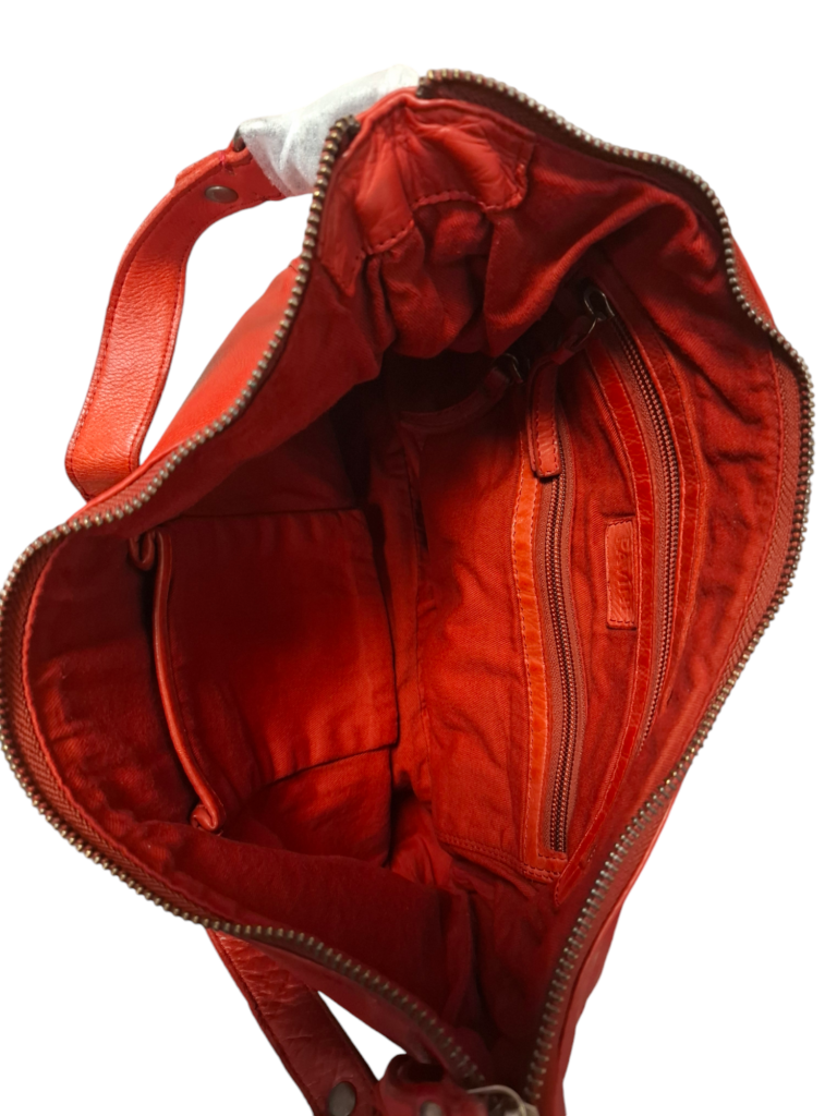 Að framan er einn rendur vasi tvær ólar stutt og önnur löng,að innan eru tveir rendir vasar ásamt einum opnum og símavasi.