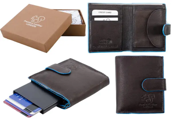 Premiere Leather LONDON ekta leðurveski með 100% RFID vernduðum kortahaldara.