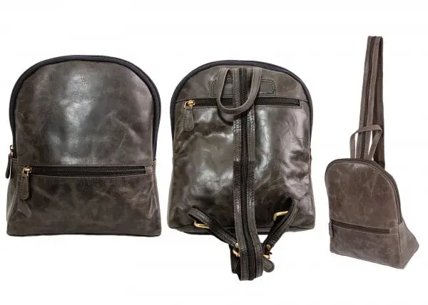 Ryan leðurbakpoki eða hliðartaska með rendum axlarböndum .Litur Brúnn. Stærð 23 x 28 x 10 cm