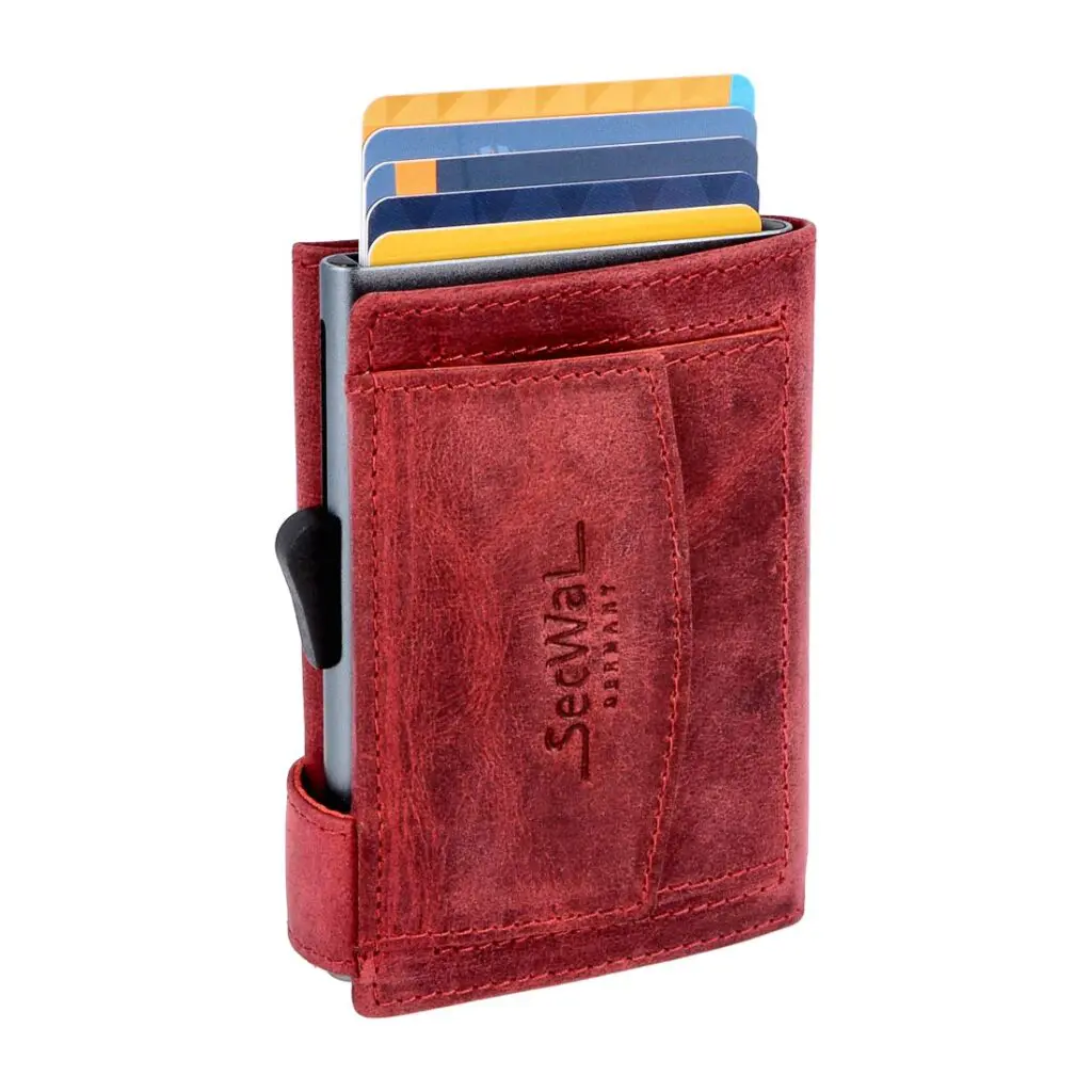 SecWal Leður RFID Kortaveski Hunter Rautt