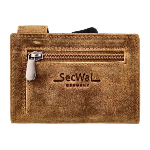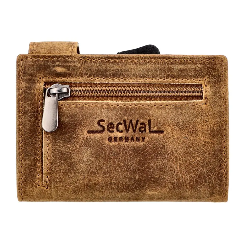 SecWal Leður RFID Kortaveski Ljós Brúnt