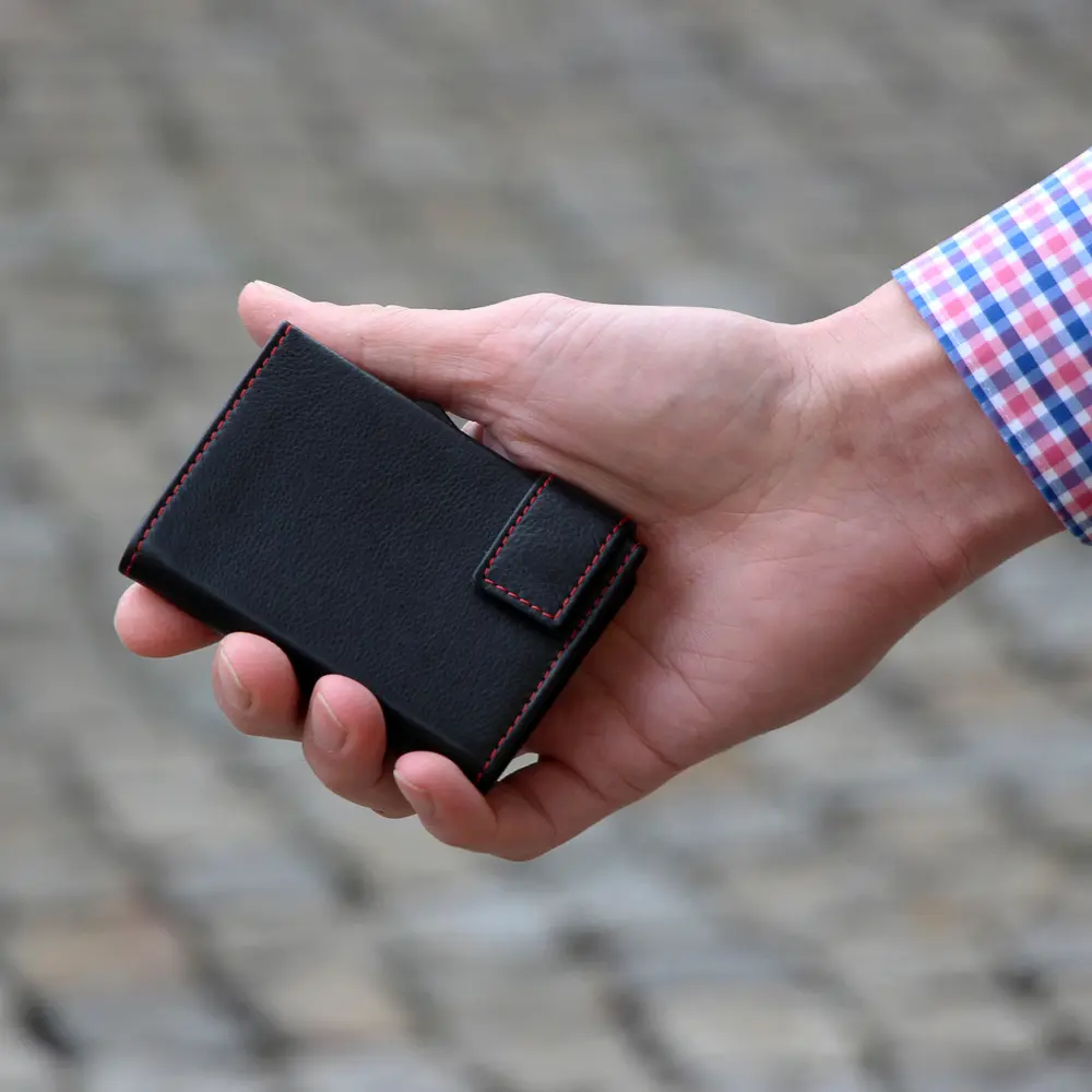 SecWal Leður RFID Kortaveski Svart með Rauðum saum