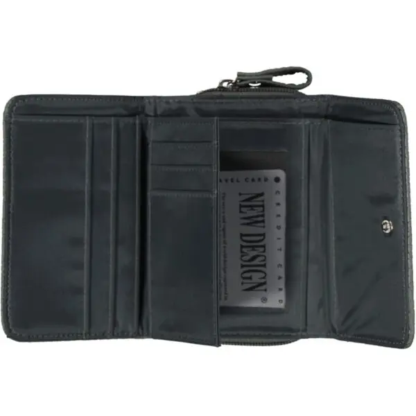 5 kortavasar 2 skilrýkja gluggar,seðlahólf 3 vasar og á baki er rendur vasi með tveimur hólfum.