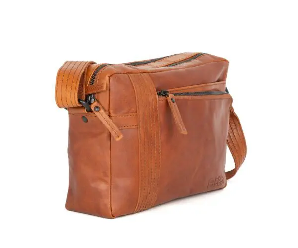 • THE MONTE Hliðartaska leður,Coníaksbrún