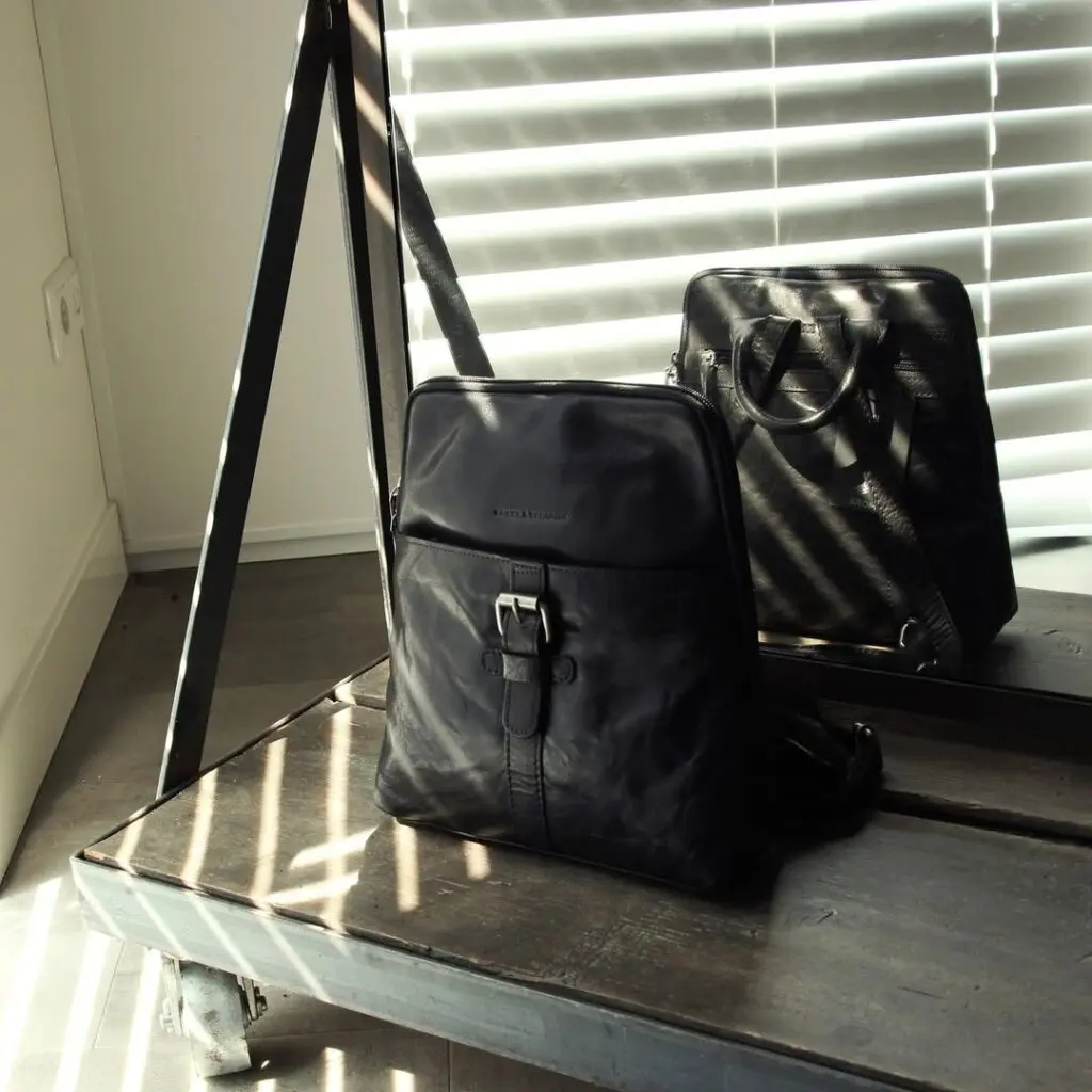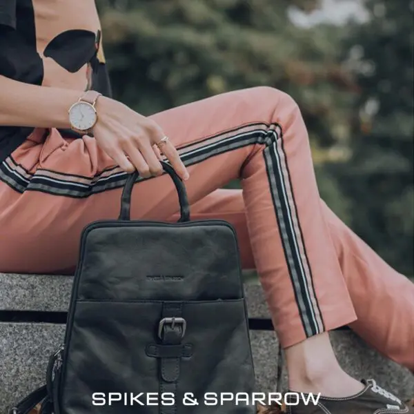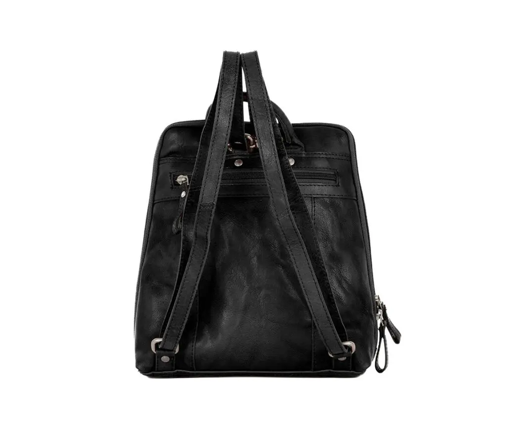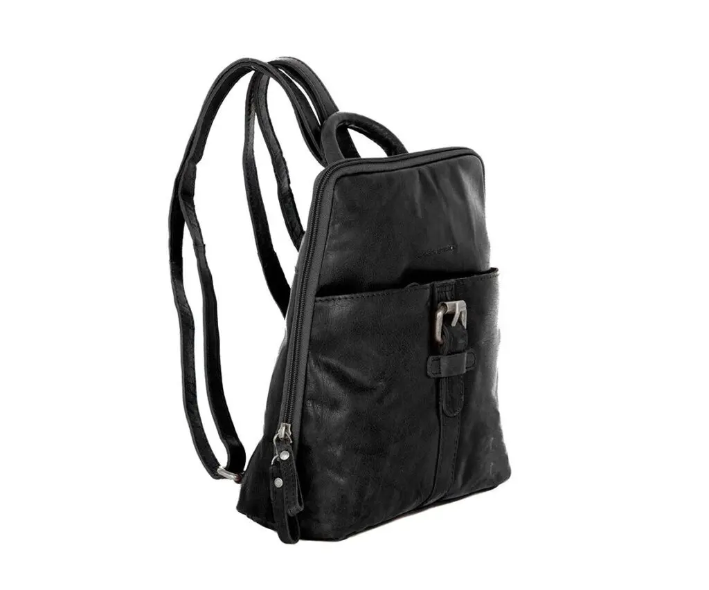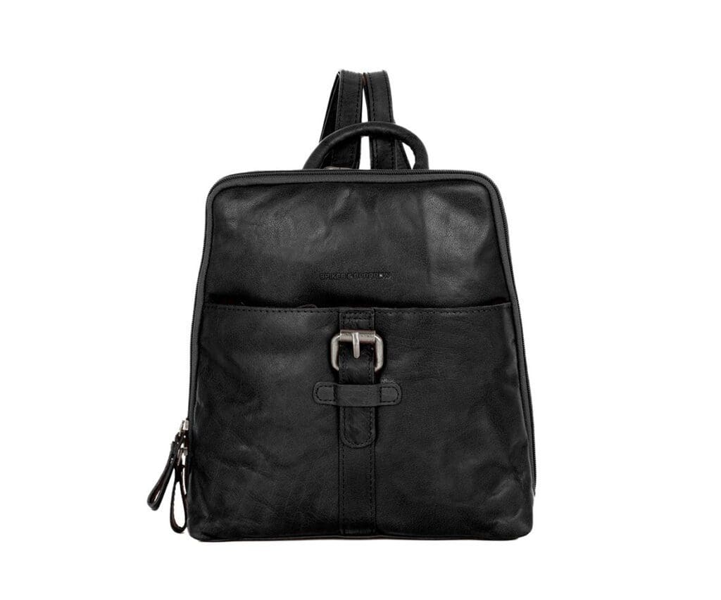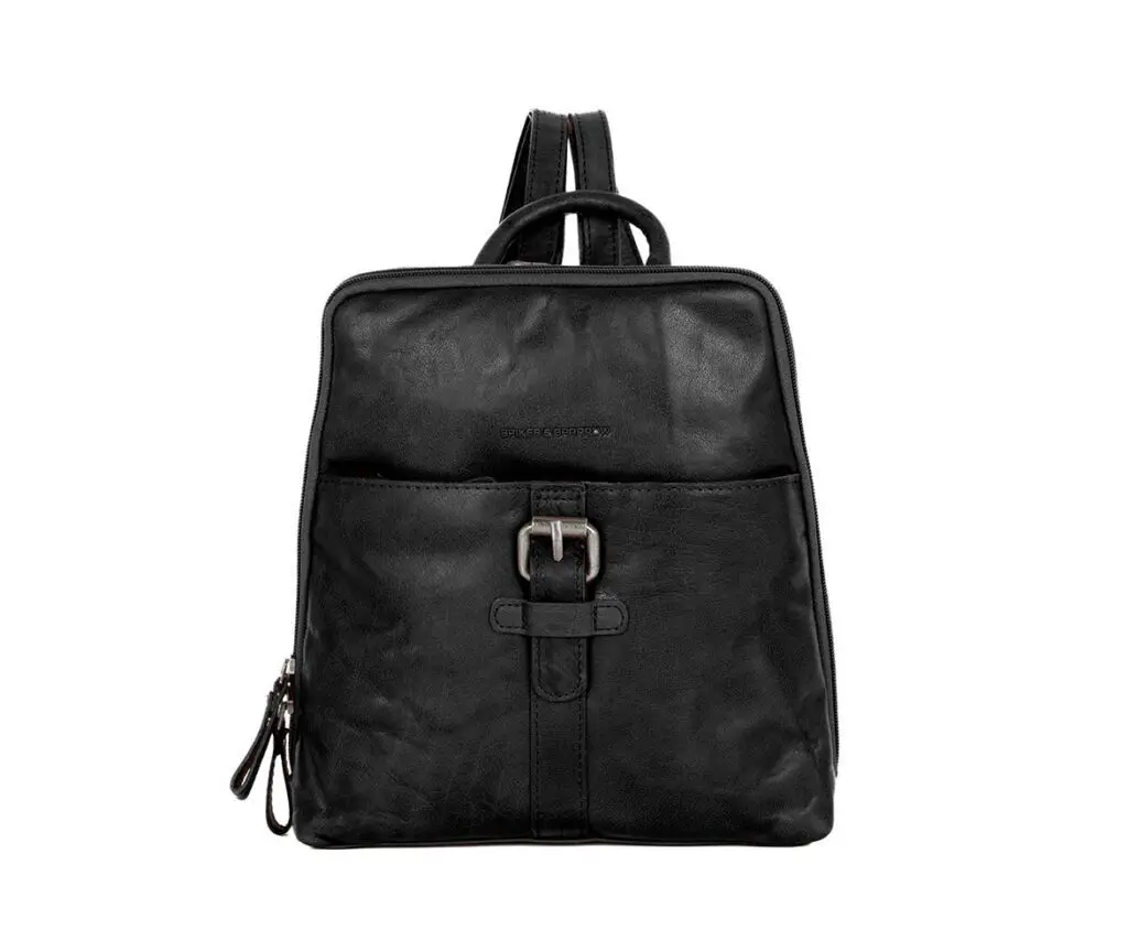 Spikes & Sparrow Leather Backpack Texas Svartur +Regncover