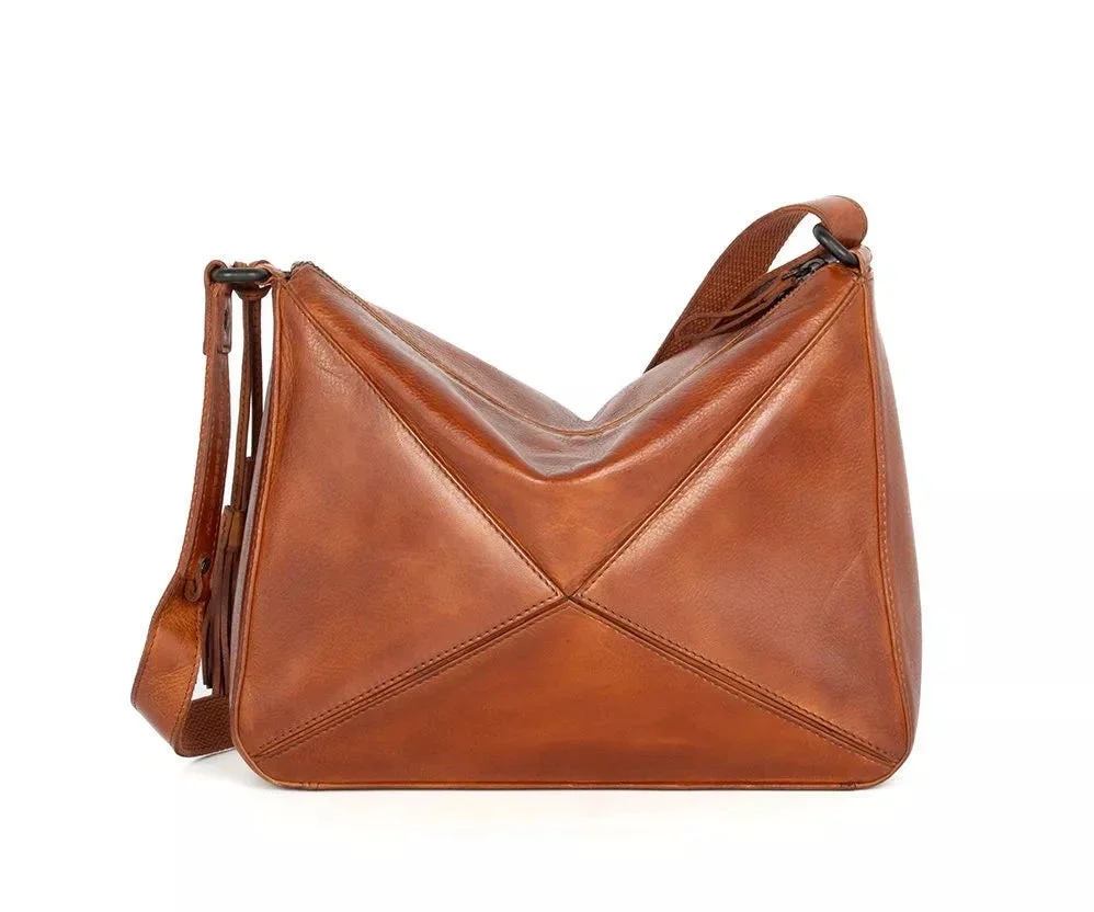 Lilla axlarpokinn er áberandi og nútímaleg taska sem vekur strax athygli með einstakri rúmfræðilegri hönnun. Taskan er úr mjúku, hágæða leðri með hlýju, náttúrulegu útliti og fallegri áferð og er einstök. Rúmfræðilega mynstrið á töskunni gefur hönnuninni skemmtilegan og nútímalegan blæ, sem gerir hana að sannkölluðu augnafangi. Taskan er með rennilás að ofan fyrir örugga geymslu. Létt smáatriði á hliðinni, leðurkúfarnir, bæta við snert af stíl. Breið axlaról tryggir hámarks þægindi, á meðan létt leðrið gerir töskuna þægilega í burði, jafnvel þegar hún er fullhlaðin. Lilla er fullkominn kostur fyrir alla sem leita að tösku sem er bæði stílhrein og hagnýt, og sem sker sig úr fjöldanum.