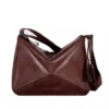 Lilla axlarpokinn er áberandi og nútímaleg taska sem vekur strax athygli með einstakri rúmfræðilegri hönnun. Taskan er úr mjúku, hágæða leðri með hlýju, náttúrulegu útliti og fallegri áferð og er einstök. Rúmfræðilega mynstrið á töskunni gefur hönnuninni skemmtilegan og nútímalegan blæ, sem gerir hana að sannkölluðu augnafangi. Taskan er með rennilás að ofan fyrir örugga geymslu. Létt smáatriði á hliðinni, leðurkúfarnir, bæta við snert af stíl. Breið axlaról tryggir hámarks þægindi, á meðan létt leðrið gerir töskuna þægilega í burði, jafnvel þegar hún er fullhlaðin. Lilla er fullkominn kostur fyrir alla sem leita að tösku sem er bæði stílhrein og hagnýt, og sem sker sig úr fjöldanum.