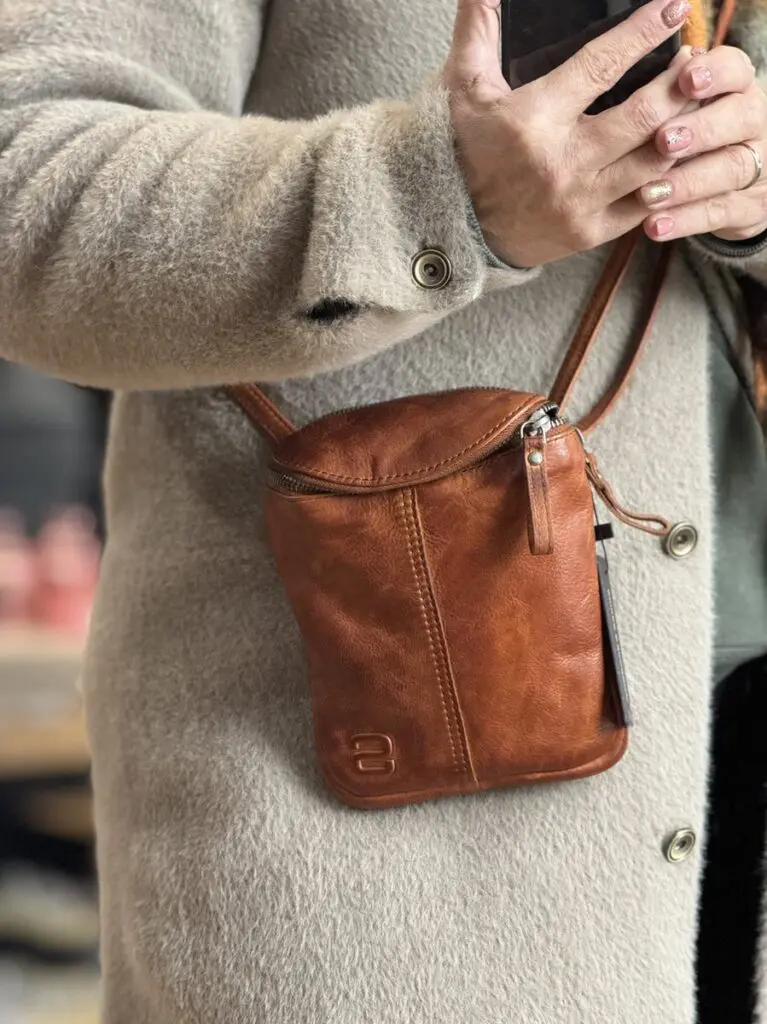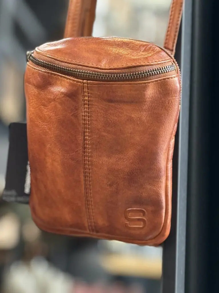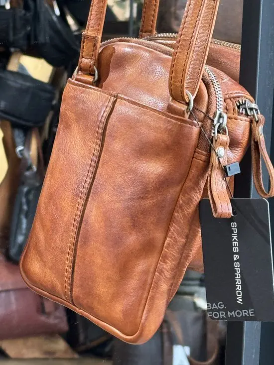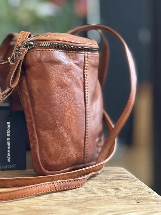 Spikes & Sparrow Leður Axlarpoki Lítill Naomi Brandy Cognac