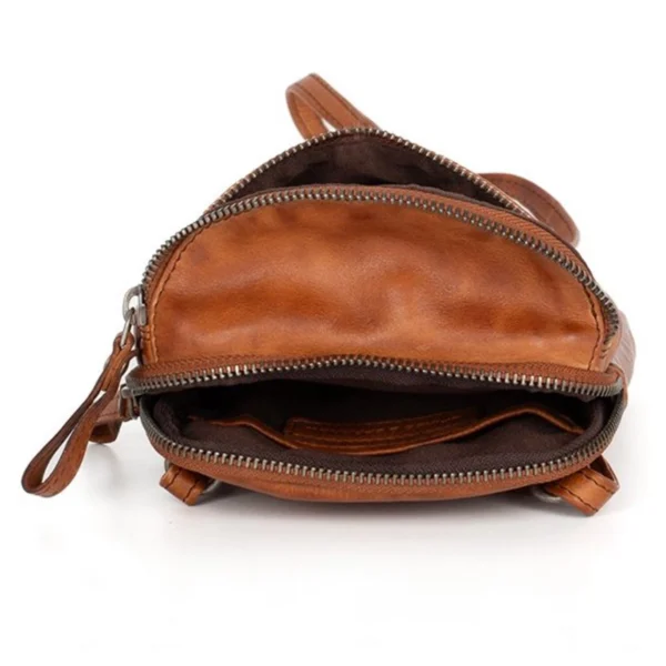 Að utan: Vasi að framan með rennilás, aðalhólf með rennilás, vasi að aftan