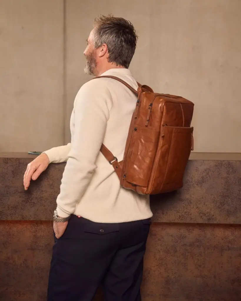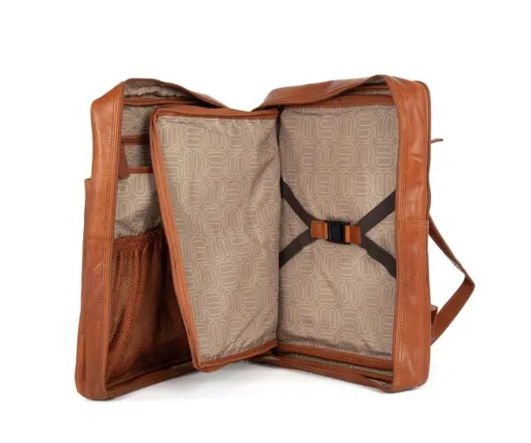 Jonathan er bæði úrvals farþegataska úr leðri, sem er leyfð á (næstum) öllum flugfélögum þar sem stærð hans fellur undir 40 x30 x 20 cm mál. Hann er fullkominn félagi þinn í stuttri borgarferð; hann hefur pláss fyrir öll föt og nauðsynjar sem þú þarft í nokkra daga og heldur sumum skyrtum þínum, blússum eða kjólum (tiltölulega) hrukkulausum. Auðvitað státar hann líka af sér bólstrað hólf fyrir pappíra eða fartölvuna þína, allt að 15,6" tommu. Hann kemur líka með regnhlíf til að vernda eigur þínar í rigningunni.
