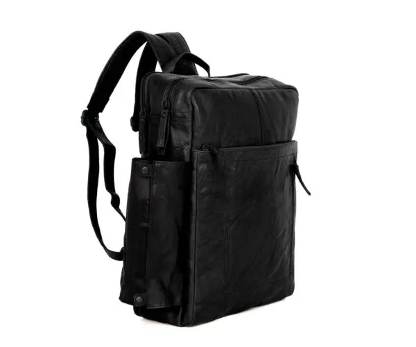 Spikes & Sparrow Leður Ferðatösku Bakpoki Jonathan 15,6" Svartur