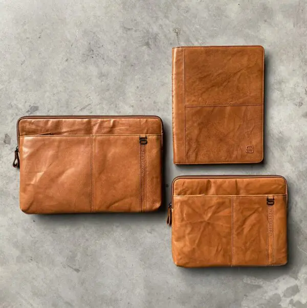 Fartölvuhulsurnar okkar veita fartölvunni þinni og fylgihlutum ekki aðeins þá vernd sem þeir eiga skilið, heldur eldast þau einnig fallega. Með tímanum munu þeir segja söguna af ferðalagi fartölvunnar þinnar. Þessi brandy fartölvuhulsa er fyrir fartölvu allt að 12″.