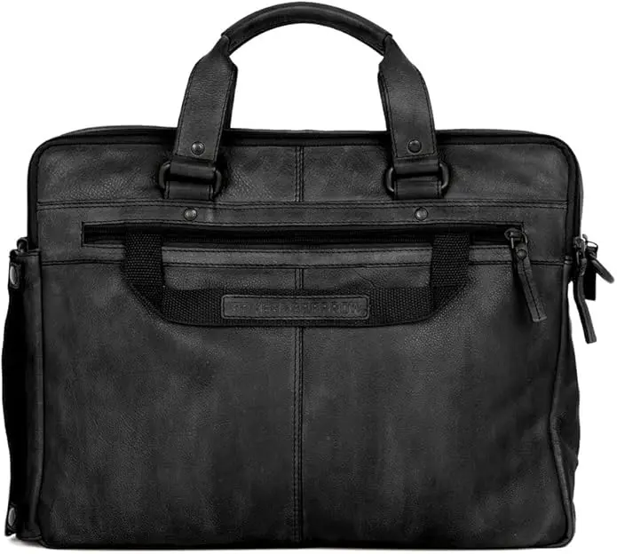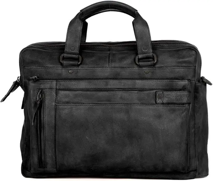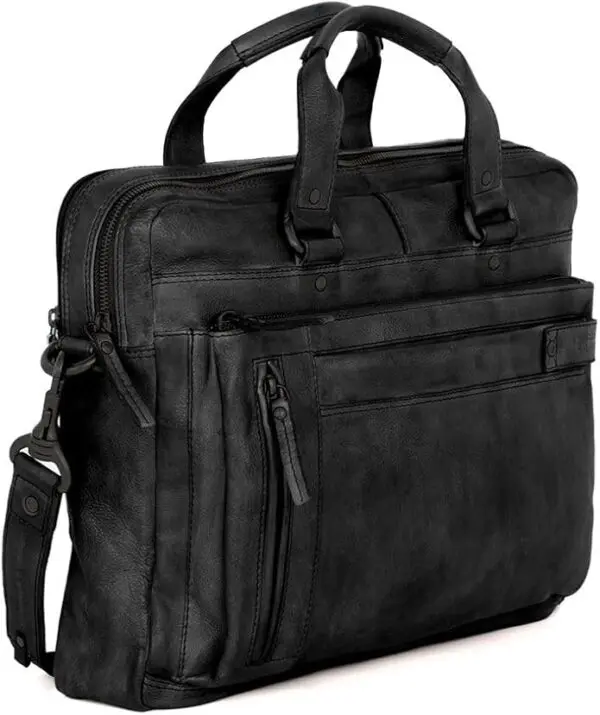 Spikes & Sparrow leður fartölvutaska Brutus Svört 15,6"