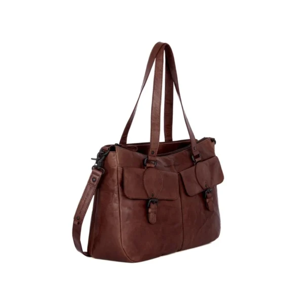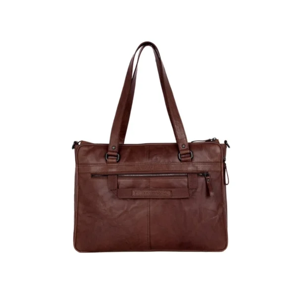 Fee fartölvuaxlartaskan er fullkomin blanda af stíl og virkni, sérstaklega hönnuð til að bera 15,6 tommu fartölvuna þína og aðra nauðsynjar með auðveldum og stílhreinum hætti. Taskan er með sérstökum froðuvasa að aftan fyrir 15,6 tommu fartölvuna þína. Að innan er rúmgott rými fyrir allar aðrar nauðsynjar, svo sem skjöl, hleðslutæki, síma og lykla. Tveir framvasar, með vestrænum innblásnum flipa og spennulokun, vekja strax athygli. Þessir smáatriði gefa töskunni skemmtilegan en samt harðgeran blæ, sem aðgreinir hana frá hefðbundnum fartölvutöskum. Málmnaglar og spennur undirstrika handunnið útlit hennar og auka sjálfbæra útlit.