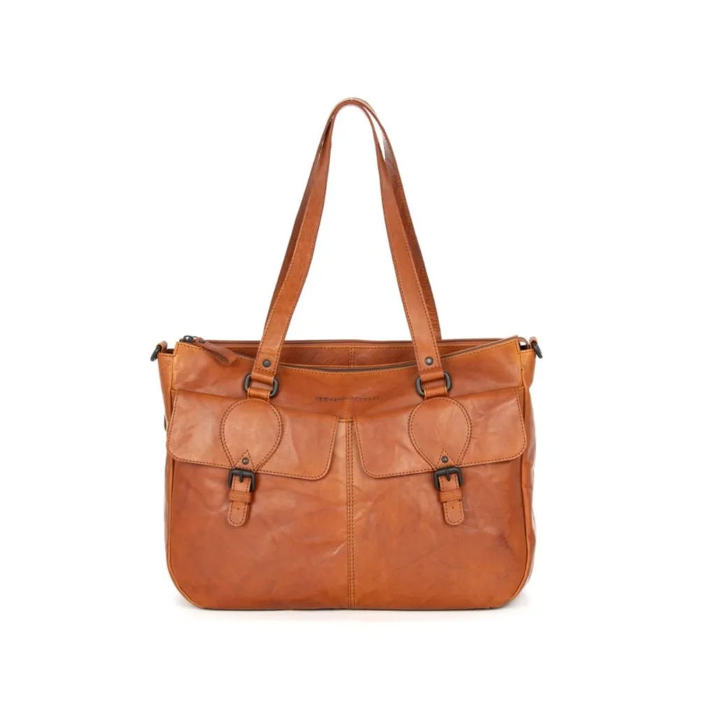 Spikes & Sparrow Leður Tölvu Axlartaska Fairy Brandy Cognac 15.6"
