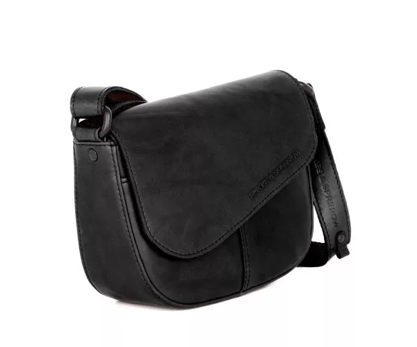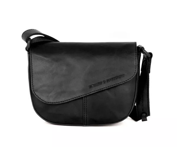 Spikes & Sparrow leðuraskrosspoki með flipa Genya Svört