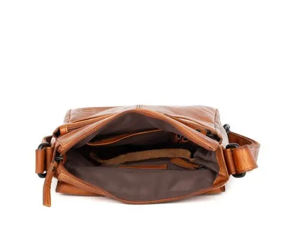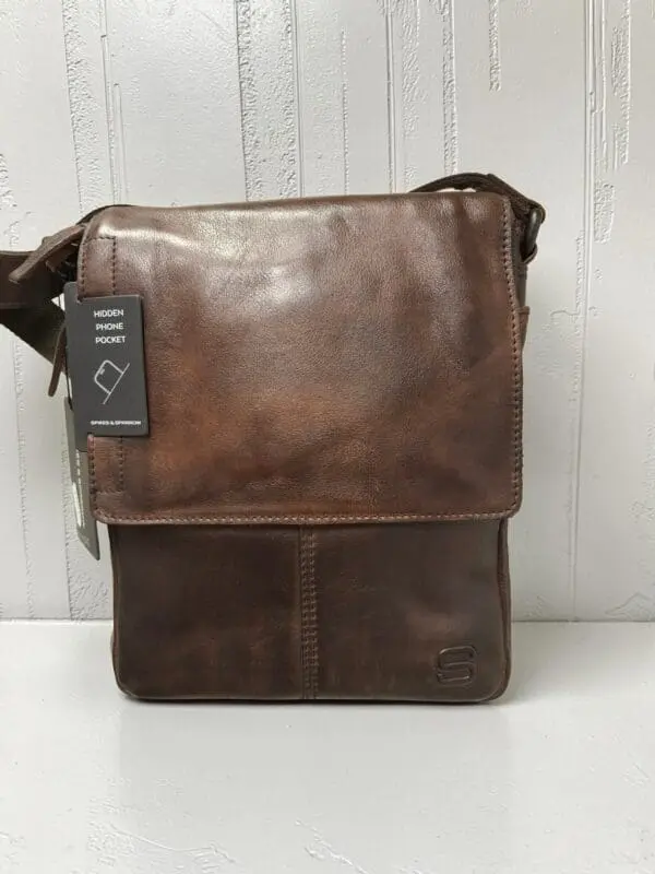 Spikes & Sparrow leðuraskrosspoki með flipa Stan Brún Falin Símavasi