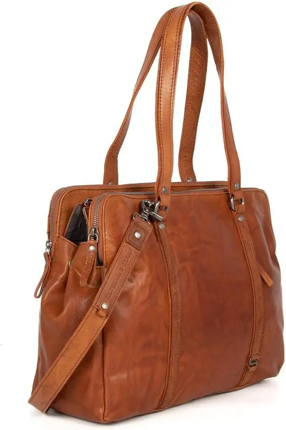 Spikes & Sparrow leðurtaska fyrir fartölvur – Kansas – Brandy Cognac