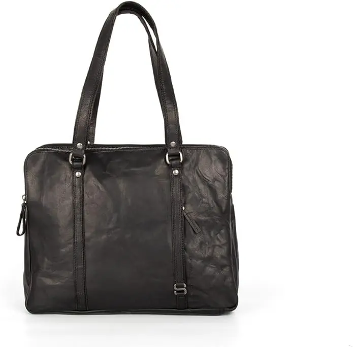 Spikes & Sparrow leðurtaska fyrir fartölvur Kansas Svört 15"