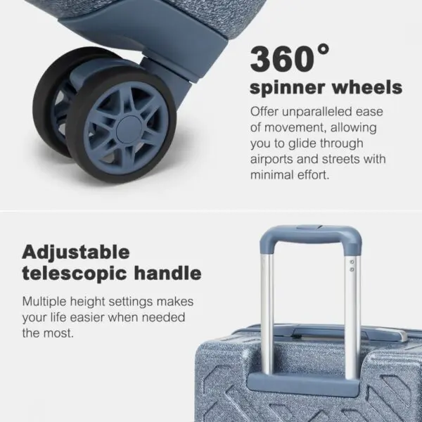 Þessi ferðataska er búin hljóðlátum TPE snúningshjólum og rennur áreynslulaust og tryggir hljóðláta og þægilega ferðaupplifun.