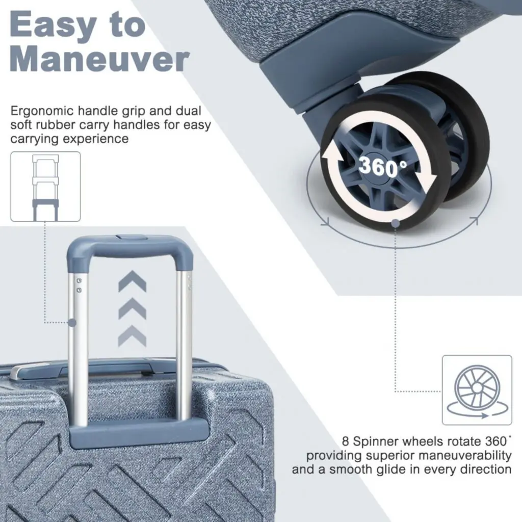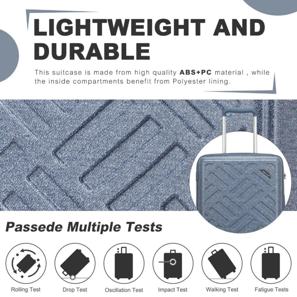 Supercase glæsilegt rúmfræðilegt mynstur úr hörðu ABS og PC ferðatöskusetti með TSA lás fyrir þægileg ferðalög - Denim blár