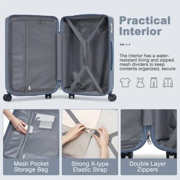 Þessi ferðataska er búin hljóðlátum TPE snúningshjólum og rennur áreynslulaust og tryggir hljóðláta og þægilega ferðaupplifun.