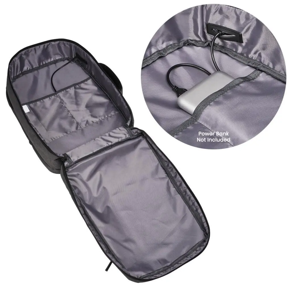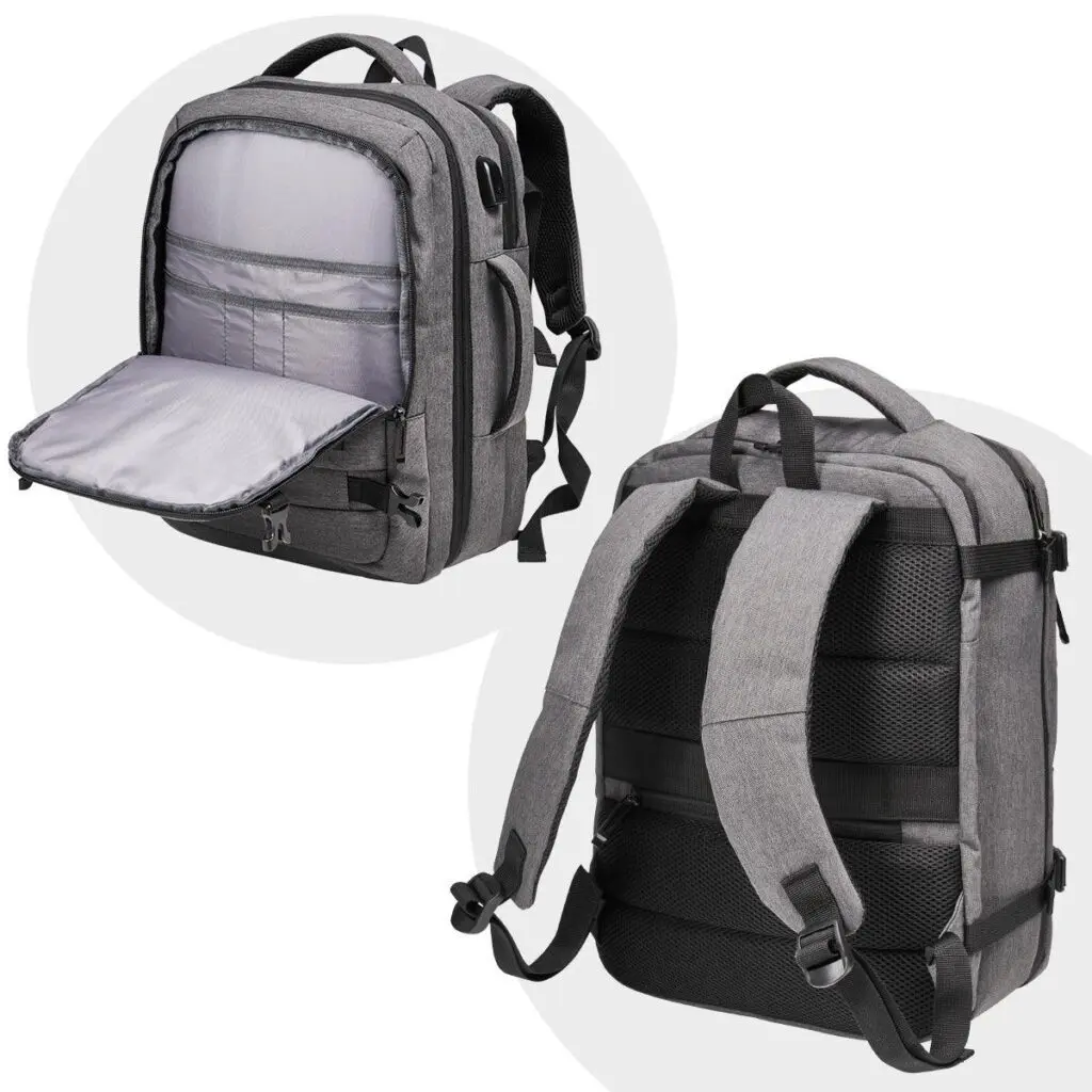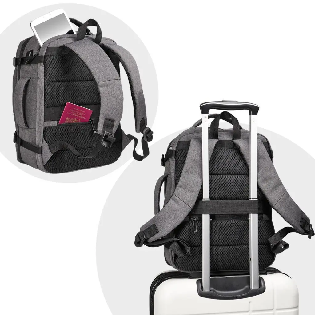 Skipulagshólf, úrval af skjótum aðgangsvösum fyrir farmiða, ferðaskjöl, síma og ferðabúnað. Leynivasi að aftan og farangursól.