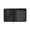 Þessi leðurmappa er með pláss fyrir minnisblokk í A4 stærð öðru megin. Hinu megin er A4 hólf sem þú getur einnig notað sem hólf fyrir spjaldtölvu. Að innan er einnig renniláshólf, hólf fyrir snjallsíma og ýmis kortahólf og önnur geymsluhólf. Mappan lokast með sterkum rennilás.