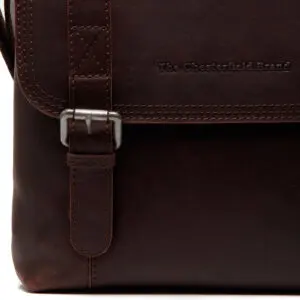 Adelanto frá The Chesterfield Brand. Ef þú ert að leita að daglegri tösku með meira geymsluplássi, þá er leðurtaska Adelanto frá The Chesterfield Brand fullkominn kostur.Leðuraxlarpokinn er með stillanlegri axlaról þannig að þú getur klæðst henni í hvaða hæð sem þú vilt. Pokinn lokar með loki með tveimur sylgjum, en lokunin er auðveldari með handhægum smellahnöppum undir sylgjunum. Undir flipanum er rúmgott aðalhólf sem lokast með rennilás. Þetta aðalhólf er búið styrktu spjaldtölvuhólfi.