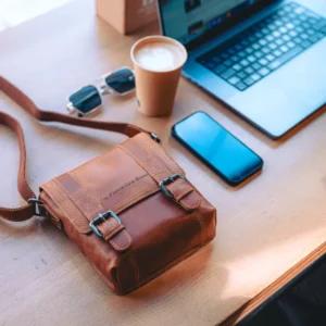 Adelanto frá The Chesterfield Brand. Ef þú ert að leita að daglegri tösku með meira geymsluplássi, þá er leðurtaska Adelanto frá The Chesterfield Brand fullkominn kostur.Leðuraxlarpokinn er með stillanlegri axlaról þannig að þú getur klæðst henni í hvaða hæð sem þú vilt. Pokinn lokar með loki með tveimur sylgjum, en lokunin er auðveldari með handhægum smellahnöppum undir sylgjunum. Undir flipanum er rúmgott aðalhólf sem lokast með rennilás. Þetta aðalhólf er búið styrktu spjaldtölvuhólfi.