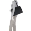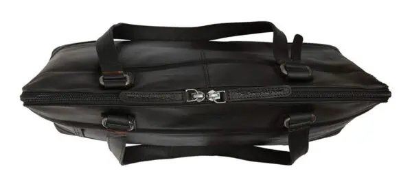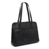 Þessi axlartaska úr leðri er með tveimur traustum axlaböndum til að vera þægilega að bera yfir öxlina. Aðalhólfið lokast með rennilás sem nær að botni töskunnar, sem gerir það kleift að opnast víða. Aðalhólfið er rúmgott og skiptist í tvo hluta með geymsluvasa með rennilás. Á annarri hliðinni finnurðu ýmsa geymsluvasa, þar á meðal einn með rennilás, fullkominn til að geyma alla mikilvægu hlutina þína eins og lykla, síma, gleraugnahulstur og veski. Á hinni hliðinni er í töskunni styrkt fartölvuhólf sem passar fyrir fartölvur allt að 13 tommu. Að auki eru bæði framhlið og bakhlið töskunnar með auka geymsluvasa með rennilás. Á bakhliðinni finnurðu líka vagnól til að setja töskuna á öruggan hátt á ferðatösku.