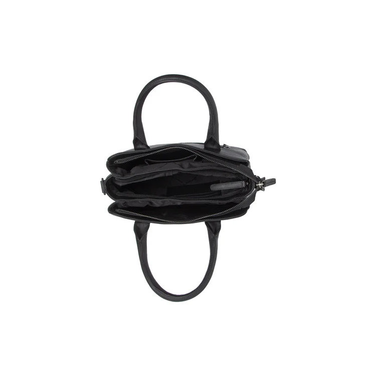 Rúmgott aðalhólf, lokað með rennilás, er skipt í þrjá hluta. Á hliðunum býður Hermosa upp á nægt pláss fyrir nauðsynjar eins og bók, gleraugnahulstur, veski eða aðra hluti. Miðhlutinn, með eigin renniláslokun, inniheldur þægilega vasa fyrir snjallsíma, kort og penna, sem tryggir að allt haldist skipulagt og örugglega geymt.