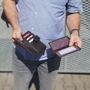 Þetta Landau veski notar einstaka RFID tækni. Þar sem þú ert venjulega vanur því að RFID veski séu með hörðu málmhylki finnurðu þetta ekki í leðurveskjunum okkar. Innan í fóðrinu á leðrinu okkar er sérstakt lag sem verndar gegn snertilausum greiðsluþjófnaði.