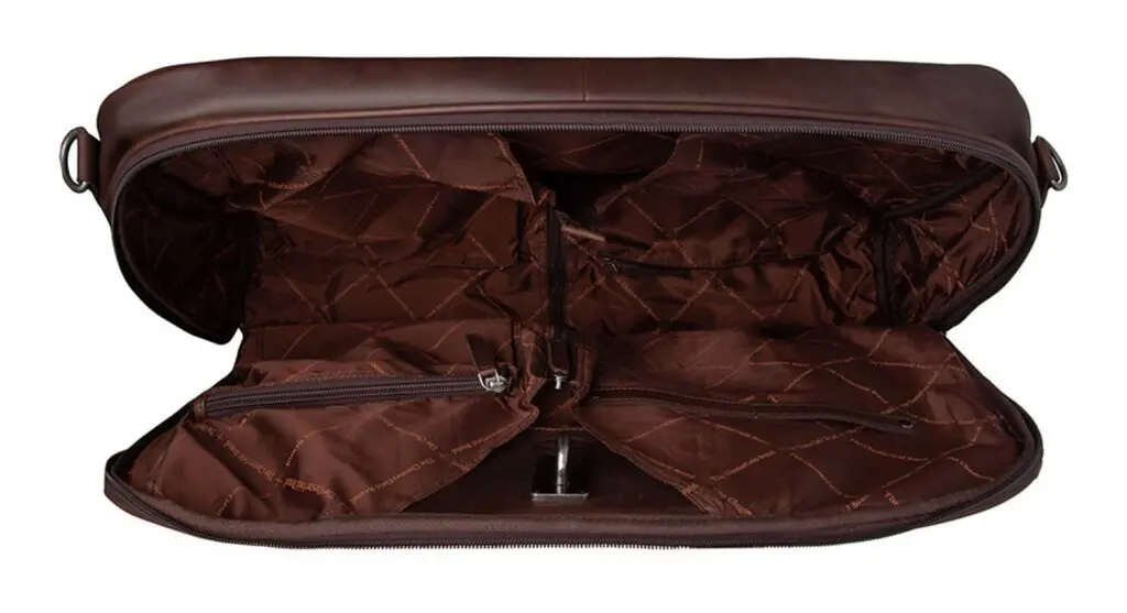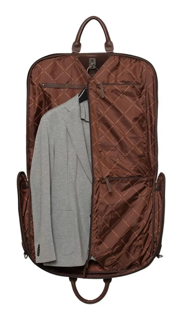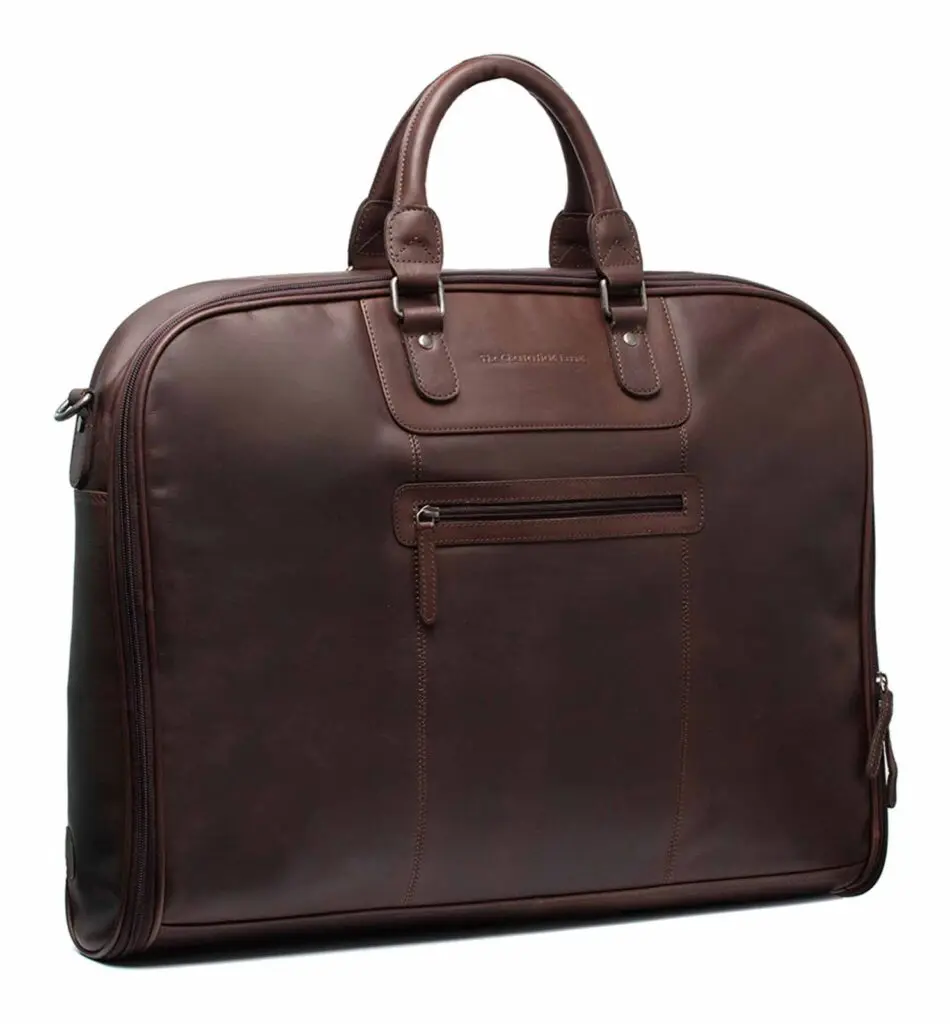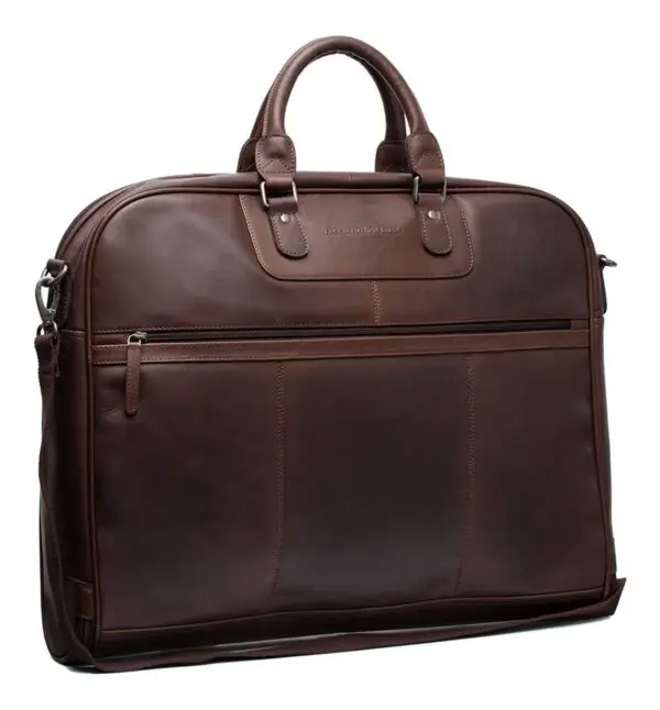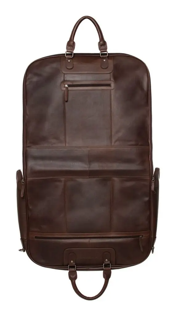 Haltu fötunum þínum í toppstandi með flottu leðurfatatöskunni Josh frá The Chesterfield Brand! Þessi ómissandi aukabúnaður gerir þér kleift að bera uppáhaldsfötin þín á auðveldan hátt og tryggir að þú lítur alltaf sem best út, sama hvar þú ert. Þessi lúxus fatapoki verndar fötin þín fyrir ryki, óhreinindum og mölflugum og tryggir að þau líti alltaf fullkomlega út. Það er tilvalið til að geyma viðkvæm efni, árstíðabundna hluti á öruggan hátt og flytja föt án hrukku. Með fatapokanum okkar helst fataskápurinn þinn skipulagður og tilbúinn fyrir öll tilefni.