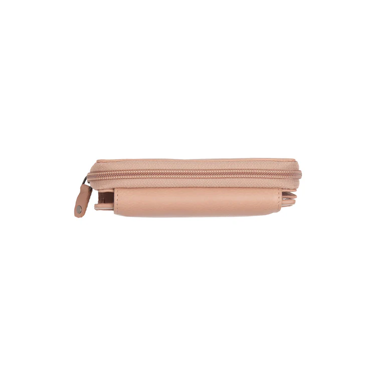 Leðurveskið fæst í litunum vintage rósrauður, beige, taupe og himinblár.