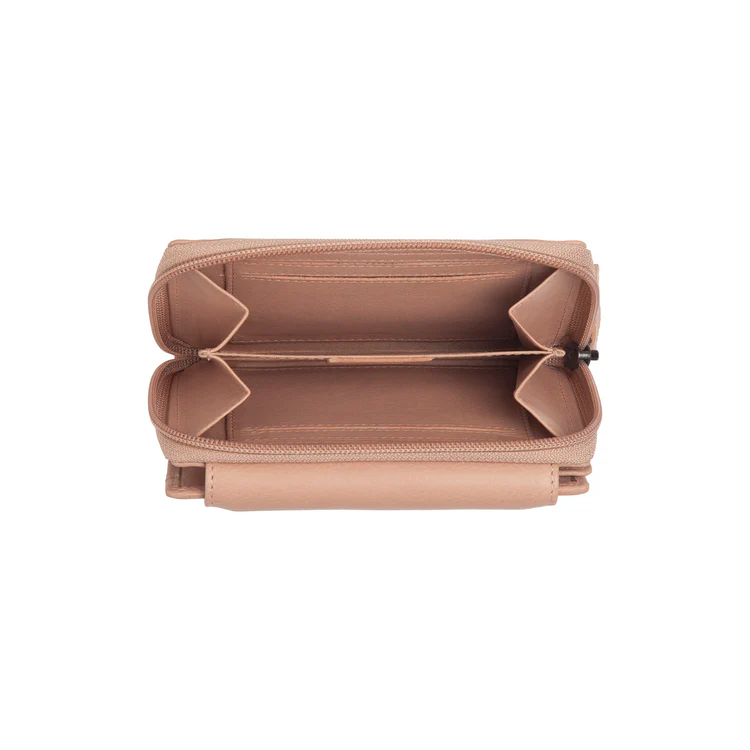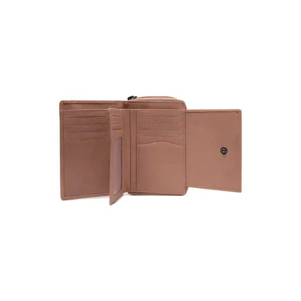 Ertu að leita að veski sem sameinar fullkomlega glæsileika og notagildi? Leðurveskið frá Orvetta er hannað fyrir daglegan þægindi, án þess að skerða stíl. Þökk sé snjöllu útliti geymir þú öll kortin þín og peninga snyrtilega við höndina. Orvetta-taskan er með tvö hagnýt aðalhólf. Fyrsta aðalhólfið lokast með loki og sterkum smelluhnappum og rúmar ekki færri en tólf kort. Að auki er nægt pláss fyrir seðla, kvittanir og önnur mikilvæg skjöl. Annað aðalhólfið lokast með mjúkum rennilás sem opnast alveg. Inni í þessu rennilásahólfi eru tvö aðskilin myntarauf og pláss fyrir fjögur aukakort, tilvalið fyrir þá sem vilja halda öllu snyrtilega aðskildu.