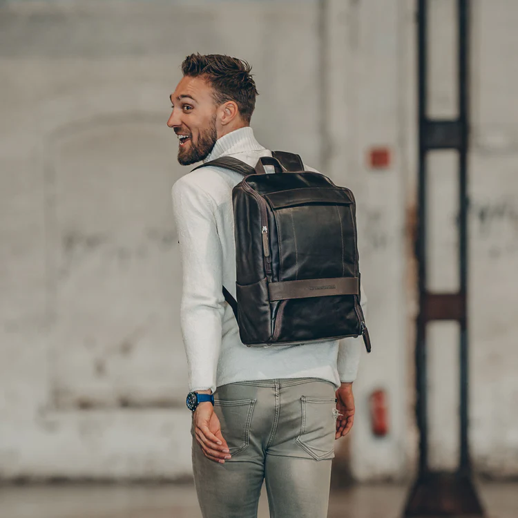 Þessi Chesterfield fartölvutaska Rich er úr ekta vaxleðri. Hágæða leðurbakpokinn er með fallegum rennilás að ofan og tveimur rennilásvösum að framan og einum öðrum vasa.