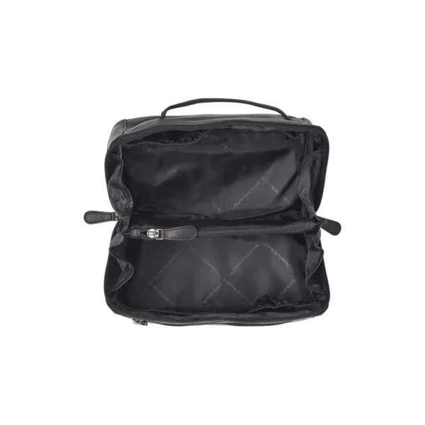 Rúmgott aðalhólfið er skipt í tvo hluta, með þröngum rennilásvasa í miðjunni. Þökk sé þessari uppröðun geturðu skipulagt hlutina þína snyrtilega: til dæmis hárlakk, förðunarvörur eða vax öðru megin og svitalyktareyði, sjampó eða rakvél hinum megin.