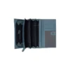 Fimmti rennilásinn er staðsettur undir flipanum. Að auki eru fimm auka rennilásar sérstaklega fyrir kort, þar á meðal einn gegnsær vasi. Þetta er handhægt fyrir skilríki eða ökuskírteini, sem gerir þér kleift að sýna þau fljótt án þess að taka þau úr veskinu. Þetta lágmarkar líkur á að týna einu af þessum mikilvægu kortum. Auka rennilásvasi hefur einnig verið bætt við að aftan fyrir hluti sem þú vilt hafa við höndina.