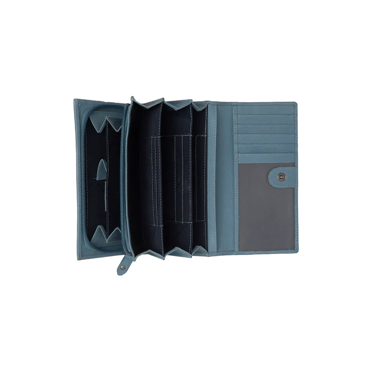 Með samtals 11 kortaraufum, fimm stórum rennilásvösum og einum rúmgóðum myntvasa með skilrúmi, býður þetta leðurveski upp á einstakt geymslurými án þess að verða óþarflega mikið.