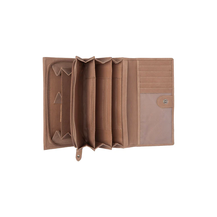 Ertu að leita að veski sem sameinar skipulag, glæsileika og auðvelda notkun á auðveldan hátt? Þá er Valetta nákvæmlega það sem þú þarft. Þetta leðurveski er hannað fyrir konur sem vilja bera allt sitt á skipulegan hátt og passar fullkomlega í aðeins stærri tösku. Valetta er langt leðurveski sem lokast með flipa og smellu. Þökk sé tveimur smelluhnappum helst veskið snyrtilega lokað jafnvel þótt það sé alveg fullt. Að innan eru ekki færri en fimm stórir rennivasar, tilvaldir fyrir seðla, kvittanir, kort og önnur mikilvæg skjöl. Fyrstu þrjú stóru hólfin eru rennivasar og bjóða upp á mikið pláss, en þar eru einnig sex sérstök rennivasar fyrir kort. Fjórða stóra hólfið er með rennilás og er sérstaklega hannað fyrir mynt. Þetta hólf er með skiptingu svo þú getir geymt myntin þín snyrtilega og haldið öllu skipulögðu. Fimmti rennilásinn er staðsettur undir flipanum. Að auki eru fimm auka rennilásar sérstaklega fyrir kort, þar á meðal einn gegnsær vasi. Þetta er handhægt fyrir skilríki eða ökuskírteini, sem gerir þér kleift að sýna þau fljótt án þess að taka þau úr veskinu. Þetta lágmarkar líkur á að týna einu af þessum mikilvægu kortum. Auka rennilásvasi hefur einnig verið bætt við að aftan fyrir hluti sem þú vilt hafa við höndina.