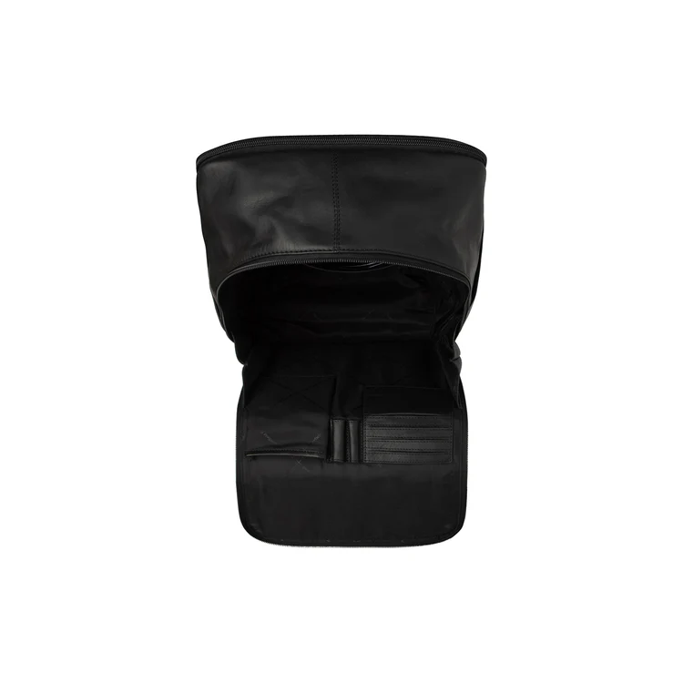 Bakpokinn er með tvö aðalhólf, bæði lokuð með rennilásum. Aftari hólfið er sérstaklega hannað til að geyma fartölvu allt að 15 tommur á öruggan hátt í styrktum vasa. Að auki gerir nýstárlega hönnunin það kleift að opna rennilásana í aðalhólfinu alveg niður, þannig að þú getir auðveldlega nálgast eigur þínar. Að innan er gott pláss fyrir símann þinn, fjögur kort, tvo penna, skjöl og aðrar daglegar nauðsynjar.