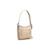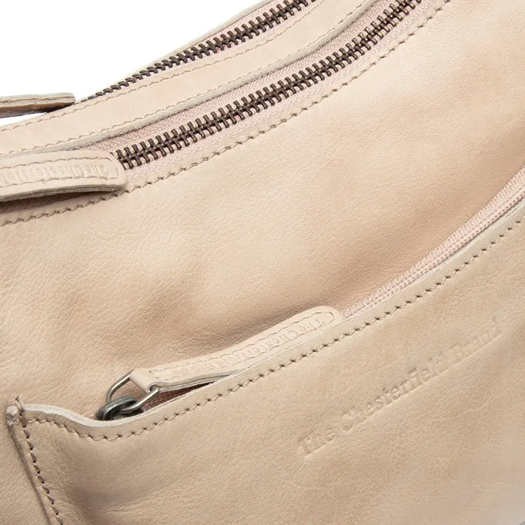 Taskan er með einni langri og einni stuttri axlaról. Langa axlarólin er stillanleg svo þú getir klæðst töskunni í þeirri lengd sem þú vilt. Taskan er með tvö rúmgóð aðalhólf, sem bæði lokast með rennilás. Í báðum aðalhólfunum er geymsluhólf þar sem þú getur geymt hlutina þína snyrtilega og örugga. Að framan er renniláshólf. Þetta hólf er tilvalið fyrir smáhluti eins og lykla og eyrnatappa. Að aftan er lítið geymsluhólf sem lokast með rennilás. Hér geturðu geymt enn fleiri af uppáhalds smáhlutunum þínum.