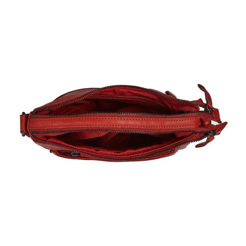 Taskan er með einni langri og einni stuttri axlaról. Langa axlarólin er stillanleg svo þú getir klæðst töskunni í þeirri lengd sem þú vilt. Taskan er með tvö rúmgóð aðalhólf, sem bæði lokast með rennilás. Í báðum aðalhólfunum er geymsluhólf þar sem þú getur geymt hlutina þína snyrtilega og örugga. Að framan er renniláshólf. Þetta hólf er tilvalið fyrir smáhluti eins og lykla og eyrnatappa. Að aftan er lítið geymsluhólf sem lokast með rennilás. Hér geturðu geymt enn fleiri af uppáhalds smáhlutunum þínum.
