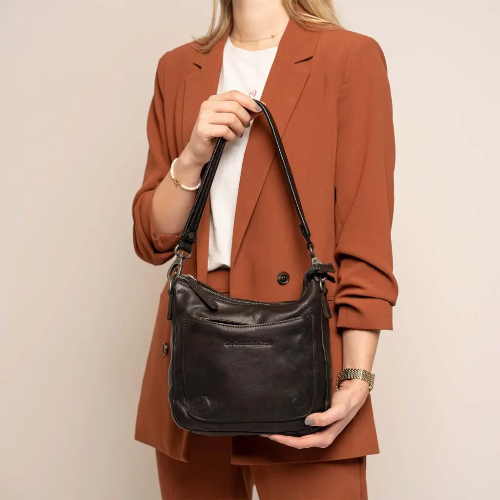 Þessi stílhreina leðurtaska frá Caroline er augnafangið sem þú þarft í daglegu lífi. Lítil og stílhrein. Með tveimur lausum axlarólum geturðu borið hana á þrjá vegu: sem krosspoka, yfir öxlina eða sem innkaupapoka! Tilvalin fyrir hvern dag.