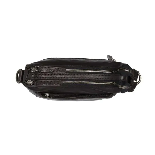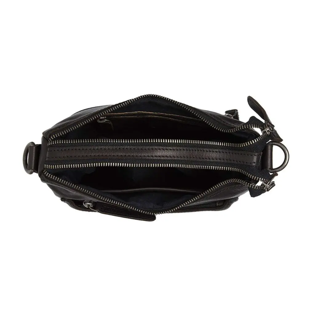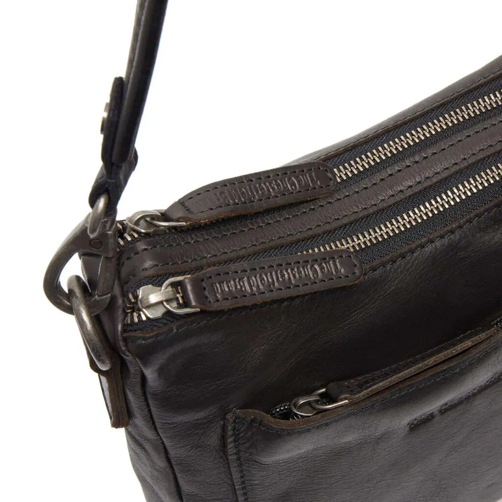Taskan er með einni langri og einni stuttri axlaról. Langa axlarólin er stillanleg svo þú getir klæðst töskunni í þeirri lengd sem þú vilt. Taskan er með tvö rúmgóð aðalhólf, sem bæði lokast með rennilás. Í báðum aðalhólfunum er geymsluhólf þar sem þú getur geymt hlutina þína snyrtilega og örugga. Að framan er renniláshólf. Þetta hólf er tilvalið fyrir smáhluti eins og lykla og eyrnatappa. Að aftan er lítið geymsluhólf sem lokast með rennilás. Hér geturðu geymt enn fleiri af uppáhalds smáhlutunum þínum.